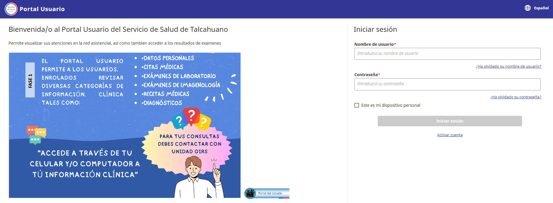 - Portal Paciente: Acá nuestros pacientes podrán acceder a un conjunto de información clave relacionada a sus atenciones.